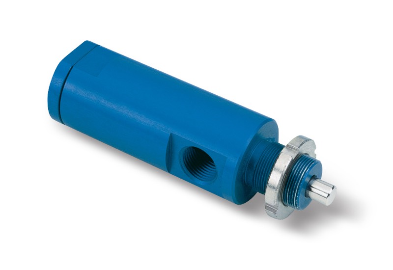 Plunger valves are composed of a natural colour or chrome-plated cylindrical brass body, depending on the items, of a steel plunger with a conical valve, a thrust spring, a nylon disc whose task is to thrust the spring onto a larger contact surface, thus avoiding unsightly prints on the load to be gripped.