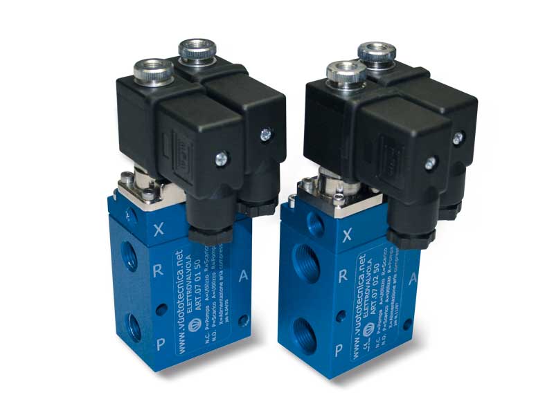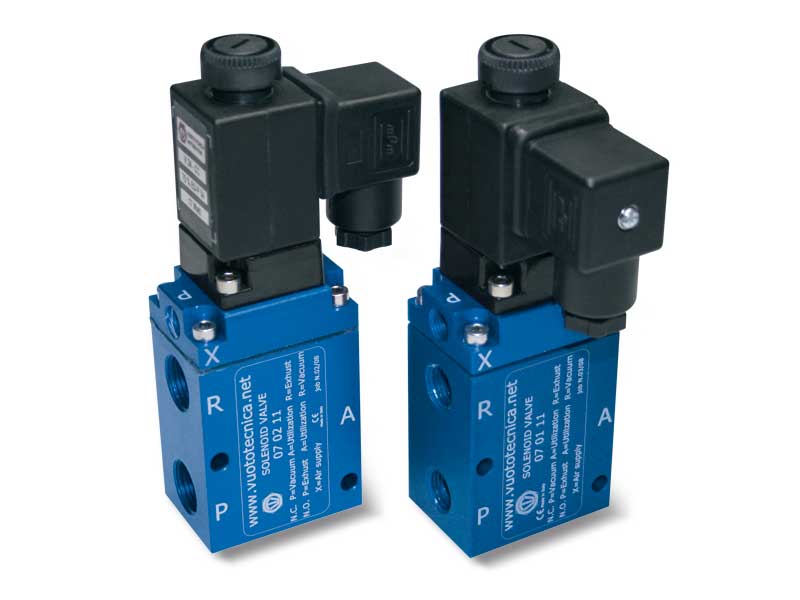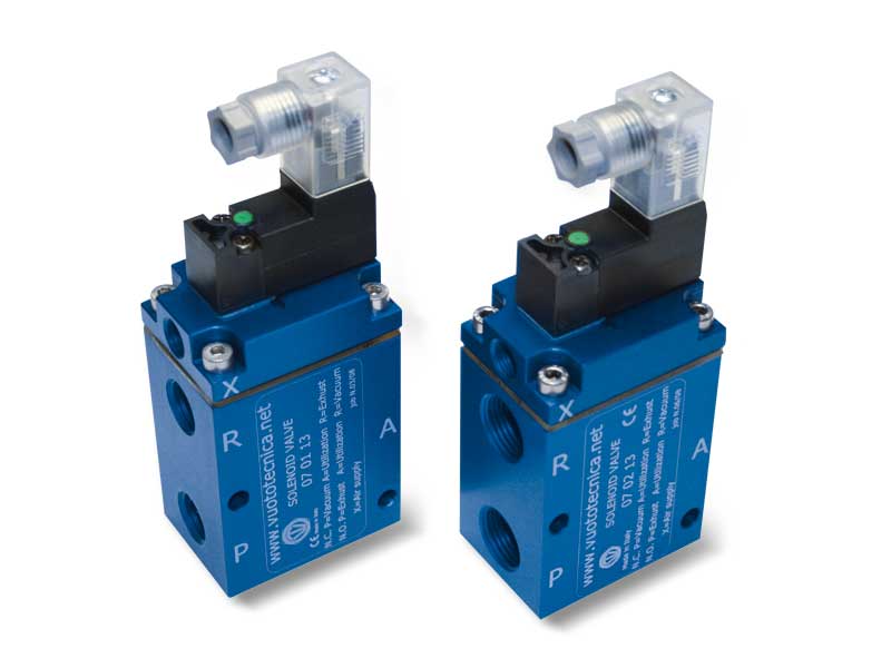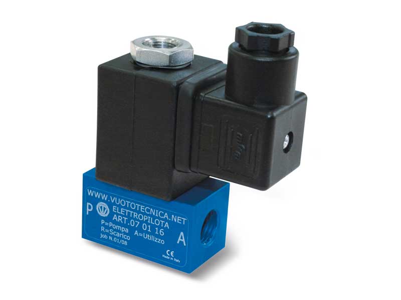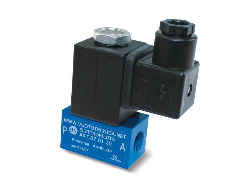 Solenoid pilot valves are small 3-way valves activated by a built-in electric coil able to manage the compressed air or the vacuum for piloting the solenoid valves.