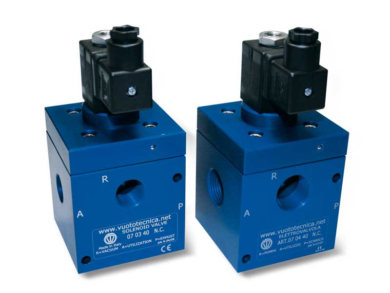 The solenoid valve must be always chosen according to the flow rate and, therefore, to the vacuum pump or generator suction connection.