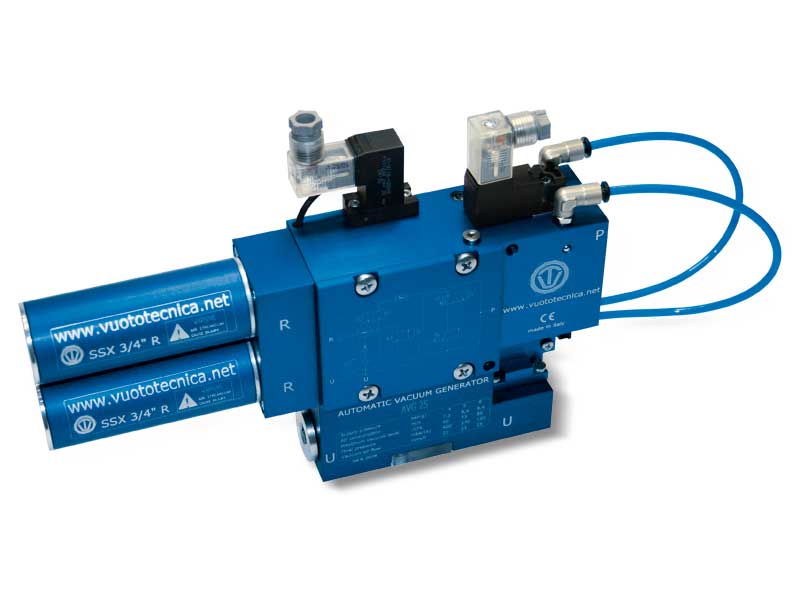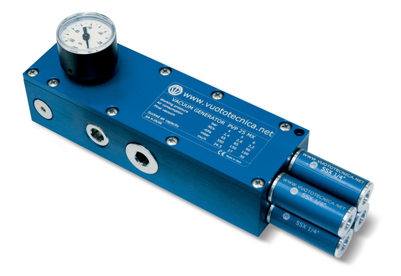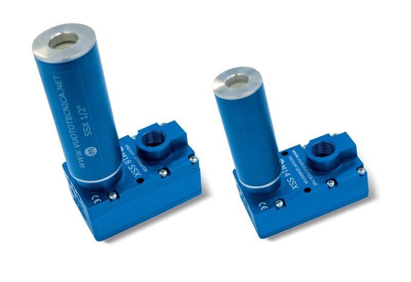 这些真空发生器可用于操控一个或多个吸盘,或者其他要求限定流量的设备,也可在特别潮湿或多尘的环境中运行。可提供抽吸流量在8.3 和 18 m3/h之间的型号,SX型号的供应压力为4÷6 bar, 而SXLP型号供应压力为 1÷3 bar 。
