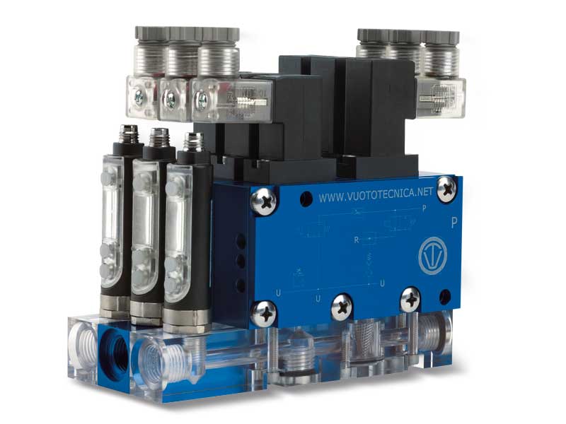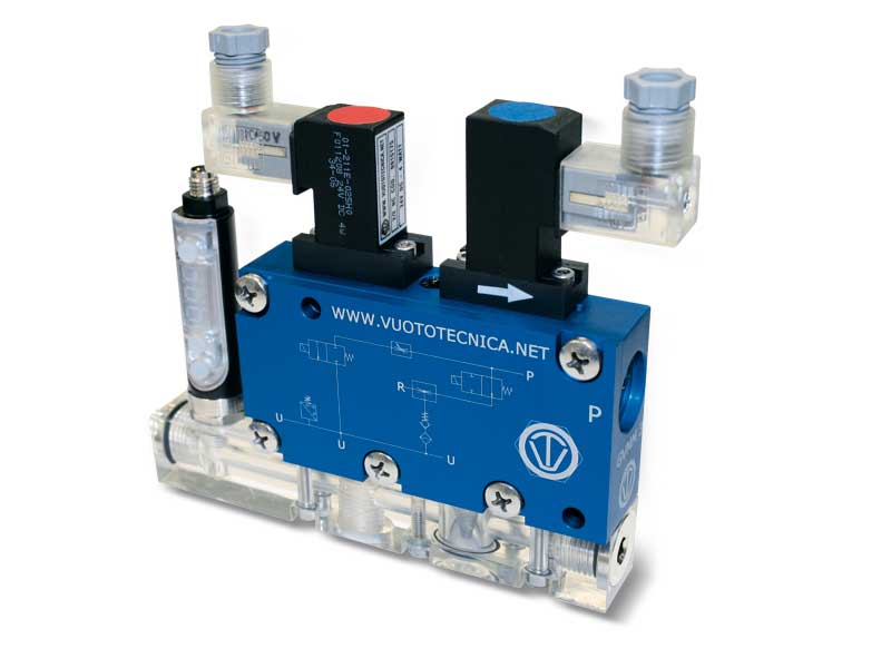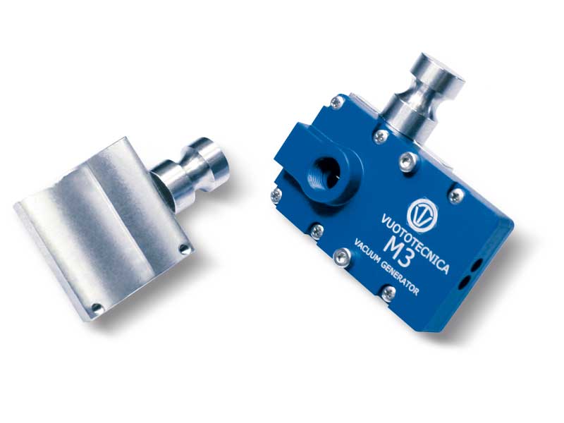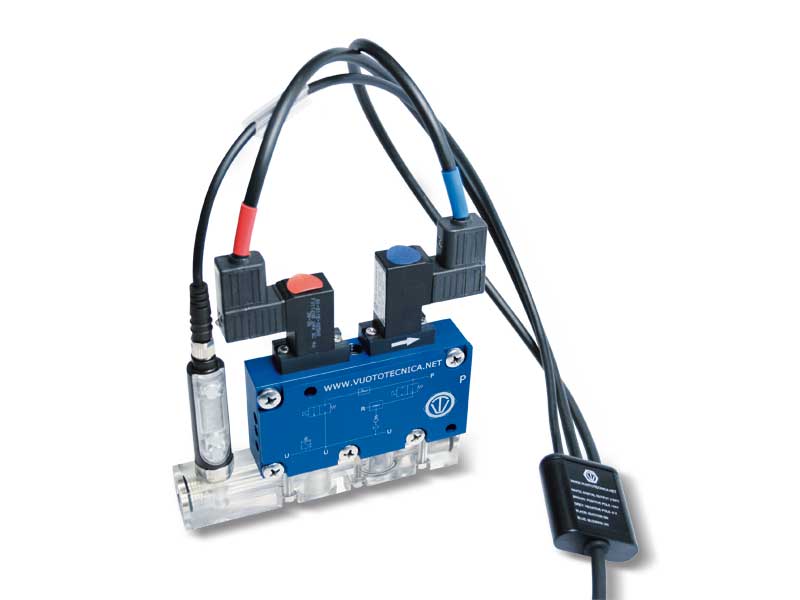 _ 流量调节阀,用于反吹阀 一个外形紧凑的电动气动控制装置,包含用于在一个操作设备(配备吸盘并 由单级或多级气动真空发生器提供动力)中管理真空发生和反吹的所有组 件。 与Vuototecnica节能电缆相结合,可构成最佳能效解决方案,该组合可将供 给气动真空发生器的压缩空气消耗量有效降低,释放吸盘所需时间极短。 在用于吸盘吸取所有具有优良密封性或具有微孔性透气的产品(金属板、玻 璃、木材、纸箱或塑料贴面板等)时,这种节能方案更加受欢迎。 Vuototecnica还推荐使用VM装置来管理所有配备气动真空发生器和带有自闭 阀的章鱼式真空抓取系统。
