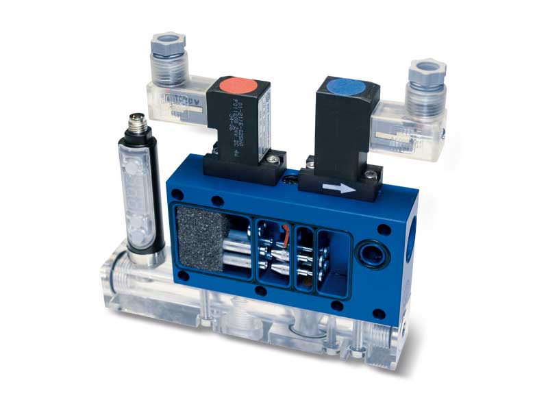 其结构包括一个阳极氧化铝阀体,内置一个同轴阀芯,由一个带低能耗线圈的微型电磁阀进行气动驱动,可管理1.5至7 bar的工作压力。