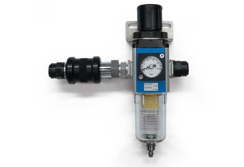 - 一个带过滤器和压力表的压力调节器,用于调节压缩空气的供应。