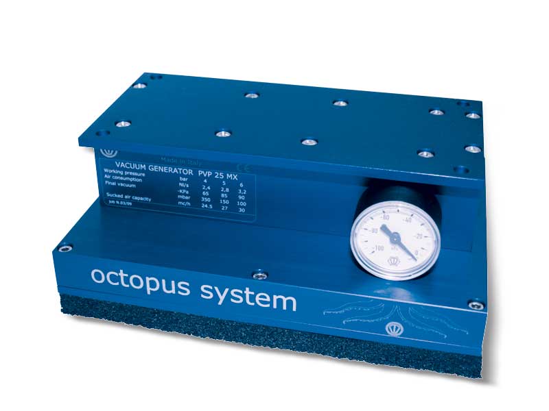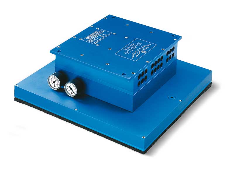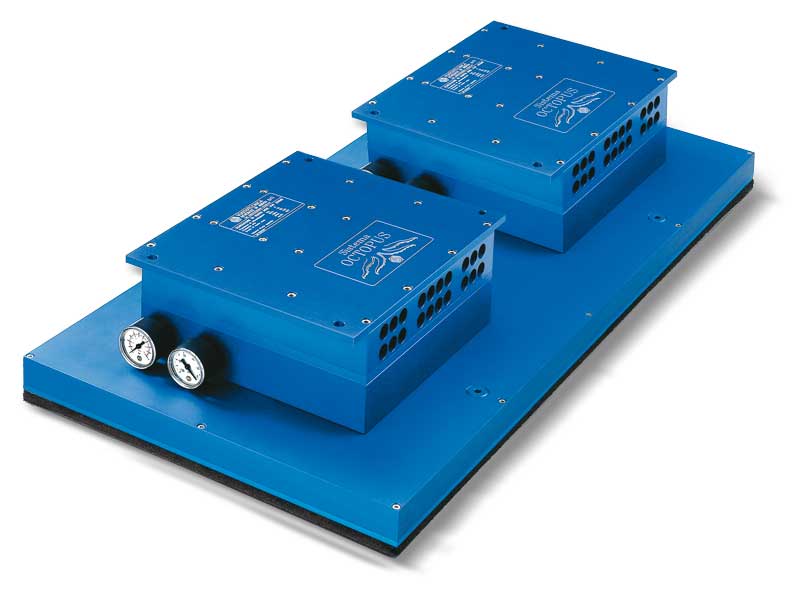 目前为止所述的条状章鱼吸板均为标准版本,可根据要求提供带有自闭阀和吸盘的吸板,为使其重量更加轻盈,铝质零部件可采用Polizene材料制成,该热塑性材料可减轻约40%的重量。