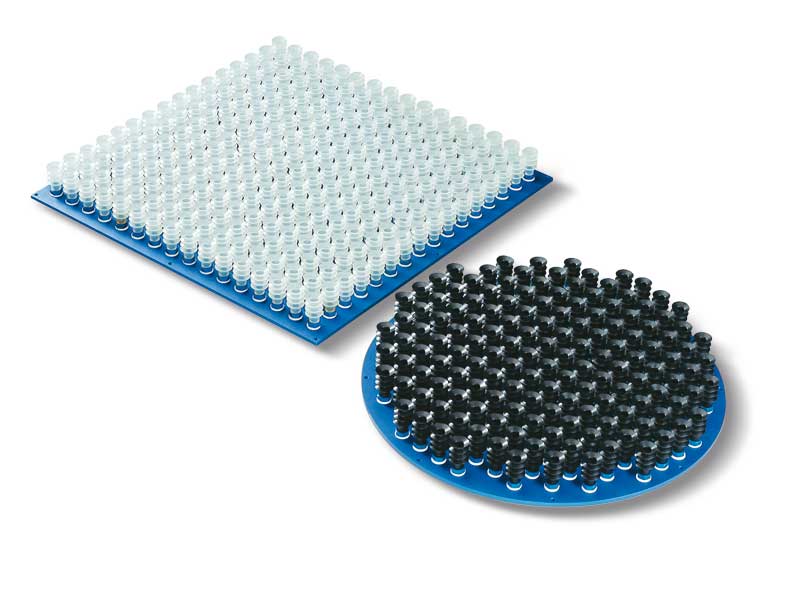 为了抓取所有表面非常不规则和易变的物体(面食或糖果包装袋、泡罩或薄膜包装袋、薄纸板小盒等),以及难以用覆盖泡沫橡胶的吸板抓取的产品,我们专门设计了此类带吸盘的吸板。