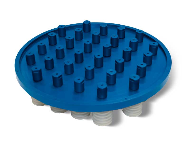 该吸板由阳极氧化铝板制成,具有等距校准孔,并覆盖有特殊的带孔泡沫橡胶,泡沫橡胶有两种厚度可供选择:PX系列吸板为20 mm,P2X系列吸板为30 mm。