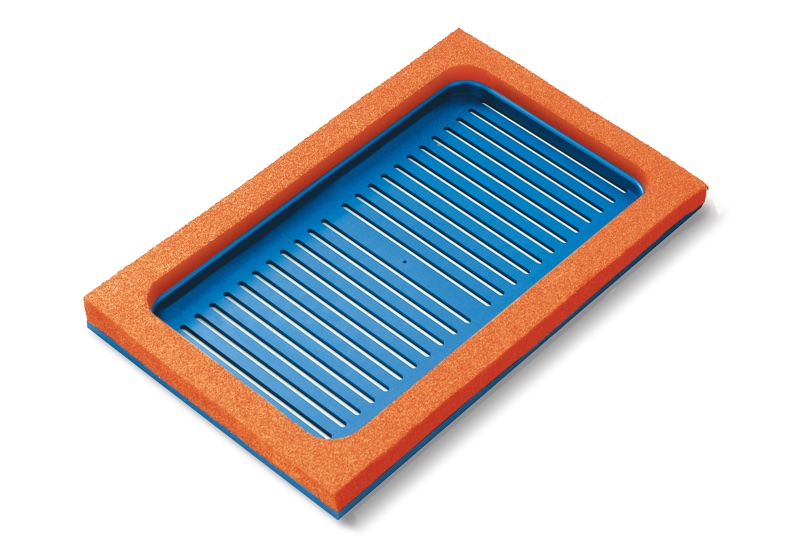 该吸板由轻质合金制成,有校准孔,覆盖两种不同厚度的特殊泡沫橡胶。可以与标准吸板完美互换。