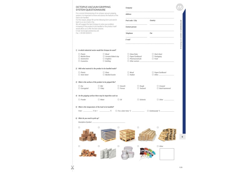 为正确选择章鱼式真空抓取系统的规格大小,需了解和评估所抓取物体的特性。