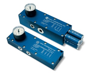 The generator has 4 vacuum connections (one for connection to any control or measurement tools), a vacuum gauge, a quick coupling for compressed air supply and metal end-caps.