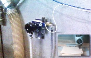 A vacuum distribution manifold, made of transparent methacrylate, with three independent intake outputs protected by a filter in stainless steel mesh that can be inspected and cleaned