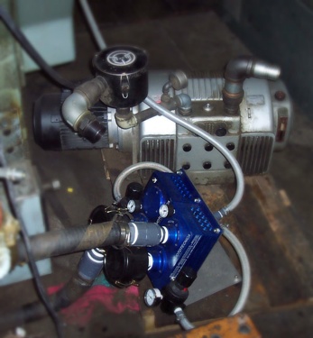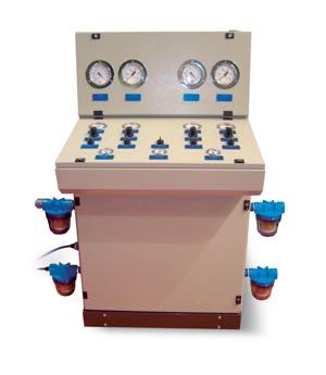 On the control panel, there are: the general pneumatic switch for intercepting supply compressed air, together with a pressure gauge for line pressure direct readout; pneumatic switches for intercepting the supply compressed air of each pump; pressure reducers with pressure gauges on, to adjust the compressed air of each pump; precision vacuum gauges and pressure gauges to read out directly the vacuum and pressure degrees; vacuum gauges that allow you to control the degree of blowing pumps filter clogging.