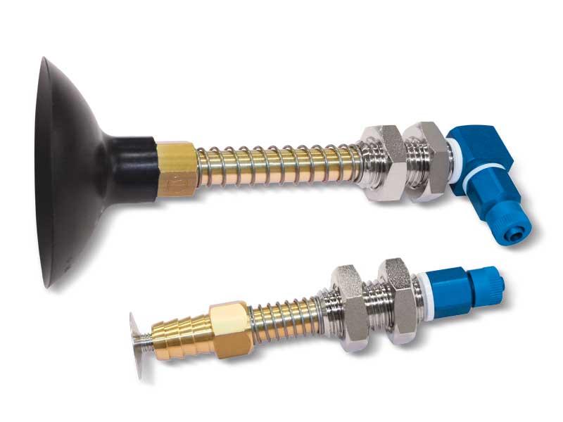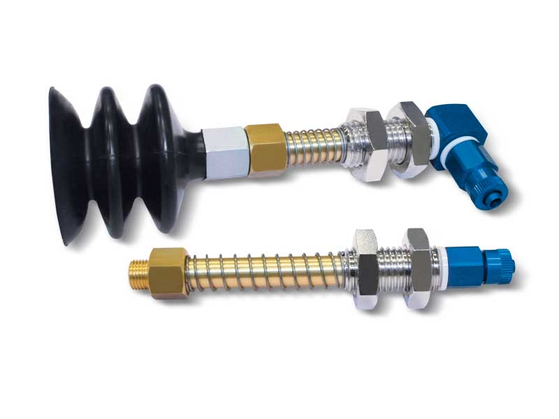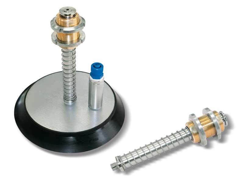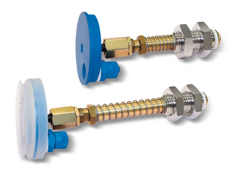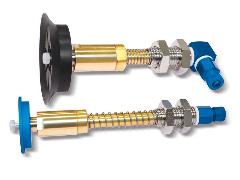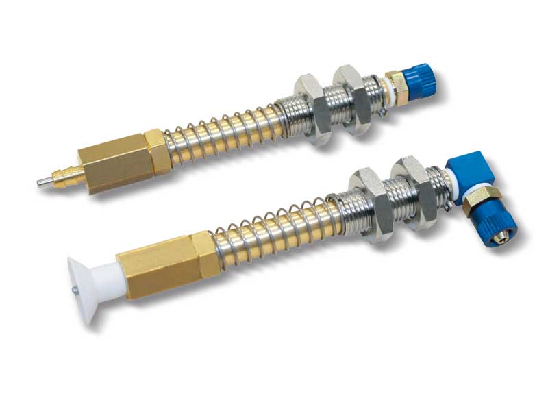 具有与特殊吸盘缓冲支杆一致的技术和机械特性,区别在于多了一个固定在吸盘接头上的柱塞阀,只有当吸盘接触到抓取的物体时才能打开真空通路产生真空。