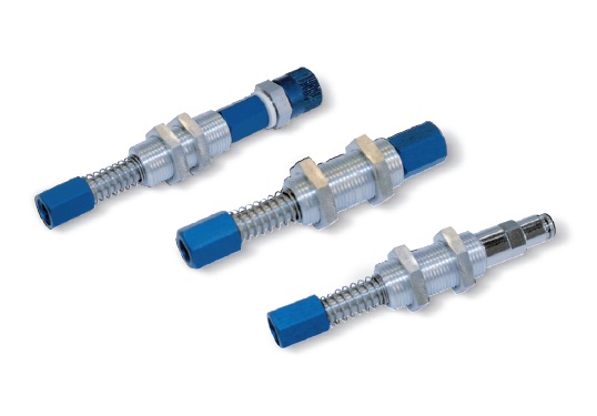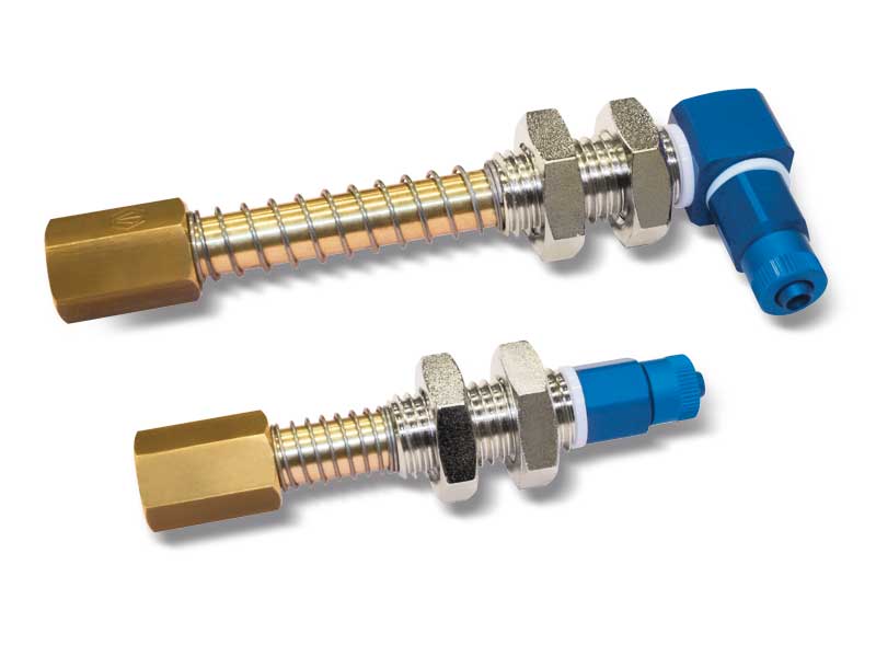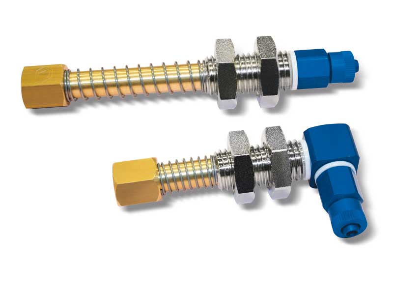 带密封圈的螺纹六角衬套可将吸盘缓冲支杆直接安装到真空歧管上,为固定到吸盘上的黄铜支杆起到导向和密封的作用。