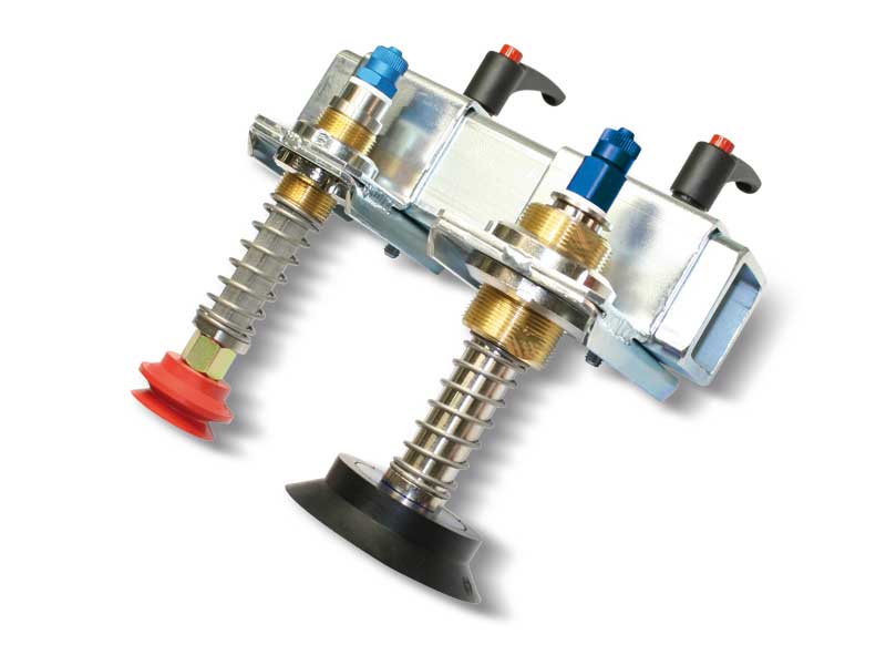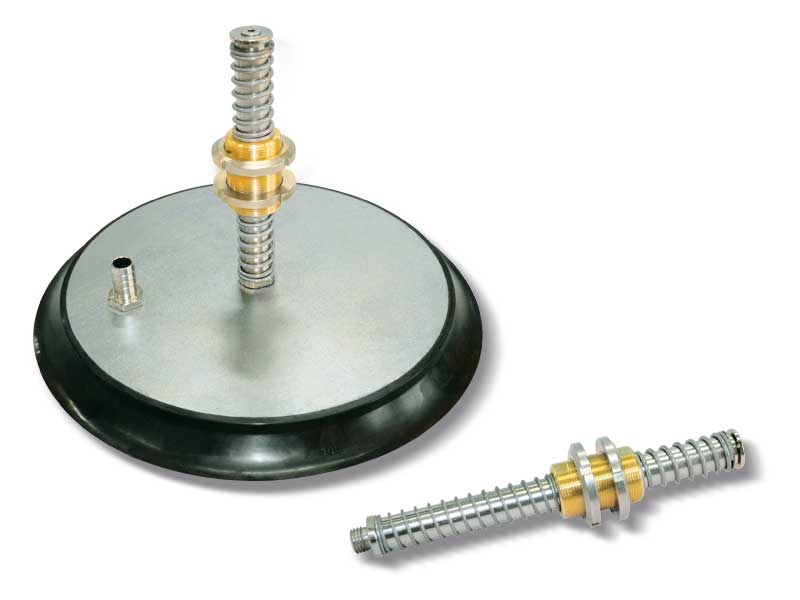 有了这些吸盘缓冲支杆,就不再需要在真空管上安装旋塞了,建议在并非所有吸盘都与提升物体接触(或因为物体不均匀,或因为不完整)的情况下使用。