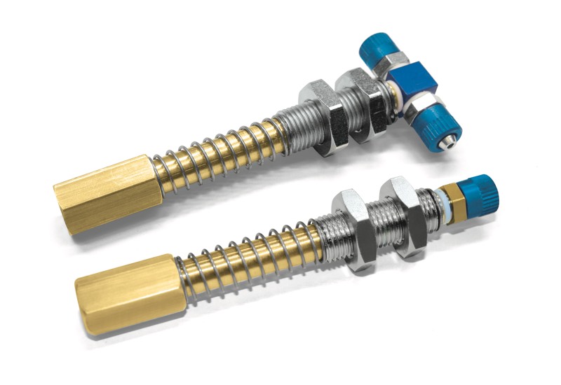 本页所述的迷你吸盘缓冲支杆具有与之前所述缓冲支杆相同的特性,区别在于黄铜支杆具有1/8”和